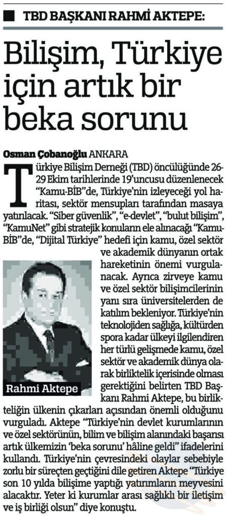Bilişim, Türkiye için Artık Bir Beka Sorunu – ANADOLU HABER GAZETESİ admin Medya Yansımaları Eki 31, 2017